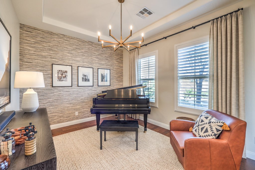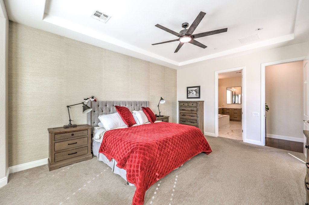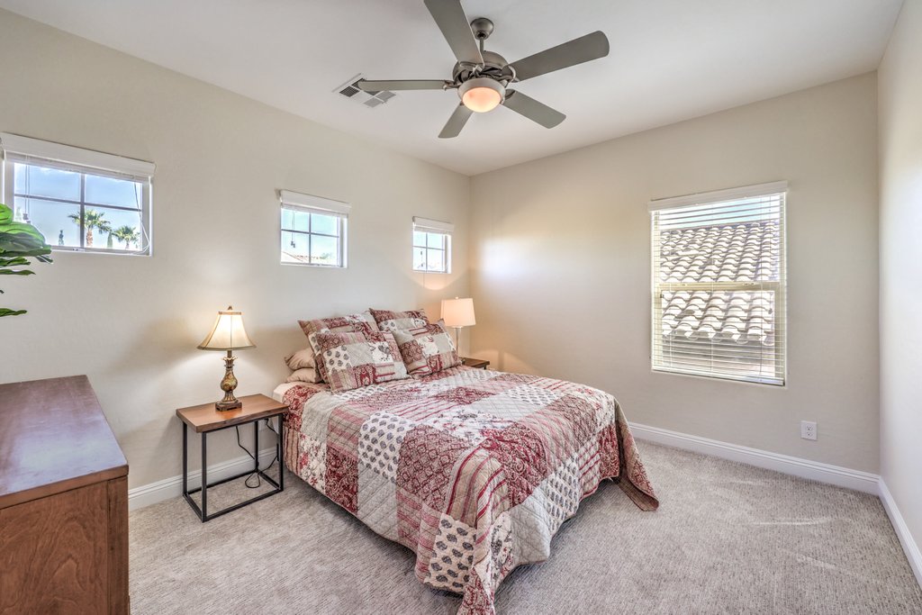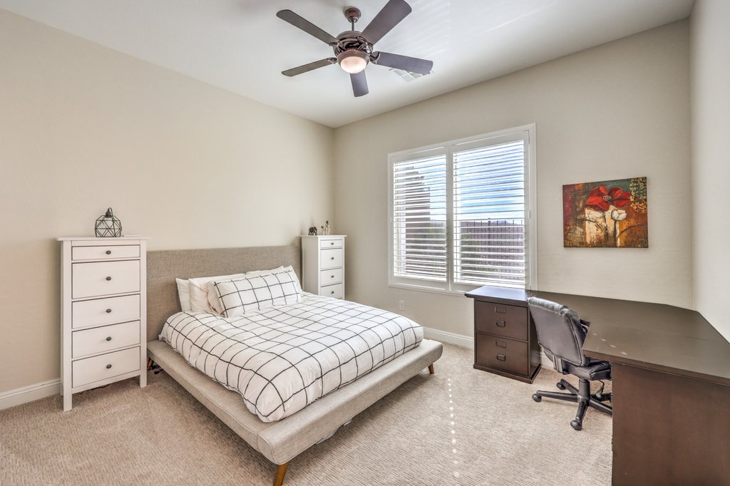 Beautifully upgraded home on a spectacular view lot in The Club at Madeira Canyon, a guard-gated lifestyle community. Enjoy sweeping views of the Sloan Conservation area and surrounding mountains along with magical sunsets and sunrises. The backyard oasis features a pool, spa, outdoor kitchen, and no rear neighbor for a sense of privacy. Interior updates include a remodeled primary bath and powder room, modern linear fireplace, sleek custom built-ins, stylish wall treatments, LED lighting, contemporary paint, and a custom walk-in primary closet. Kitchen offers granite, top-tier cabinets with roll-outs, a mega island, nook, and stainless-steel appliances. The adjacent family room with 10-foot ceilings and abundant natural light is perfect for relaxing or entertaining. Other highlights include hardwood floors and dual tilt plantation shutters. Popular Fiorentino floor plan lives like a one-story with the primary bedroom downstairs and the convenience of a loft and extra bedroom upstairs. The Club at Madeira Canyon featuring community pool, tennis, basketball, cutting edge fitness center, and an exciting social calendar. Madeira Canyon offers outstanding sports and recreation facilities as well as desirable top-rated schools.