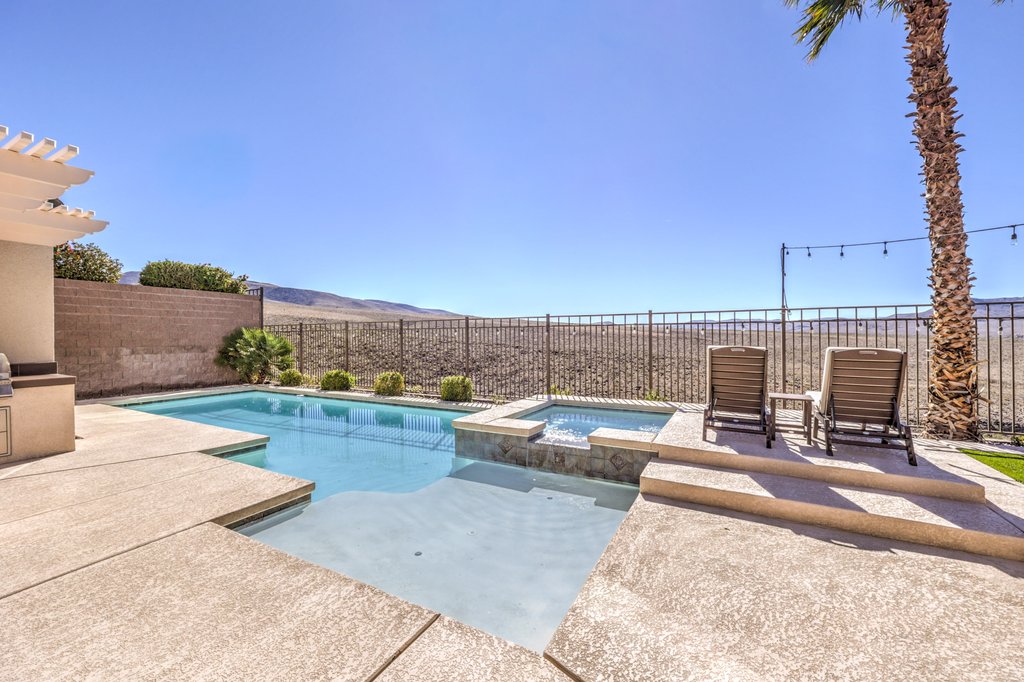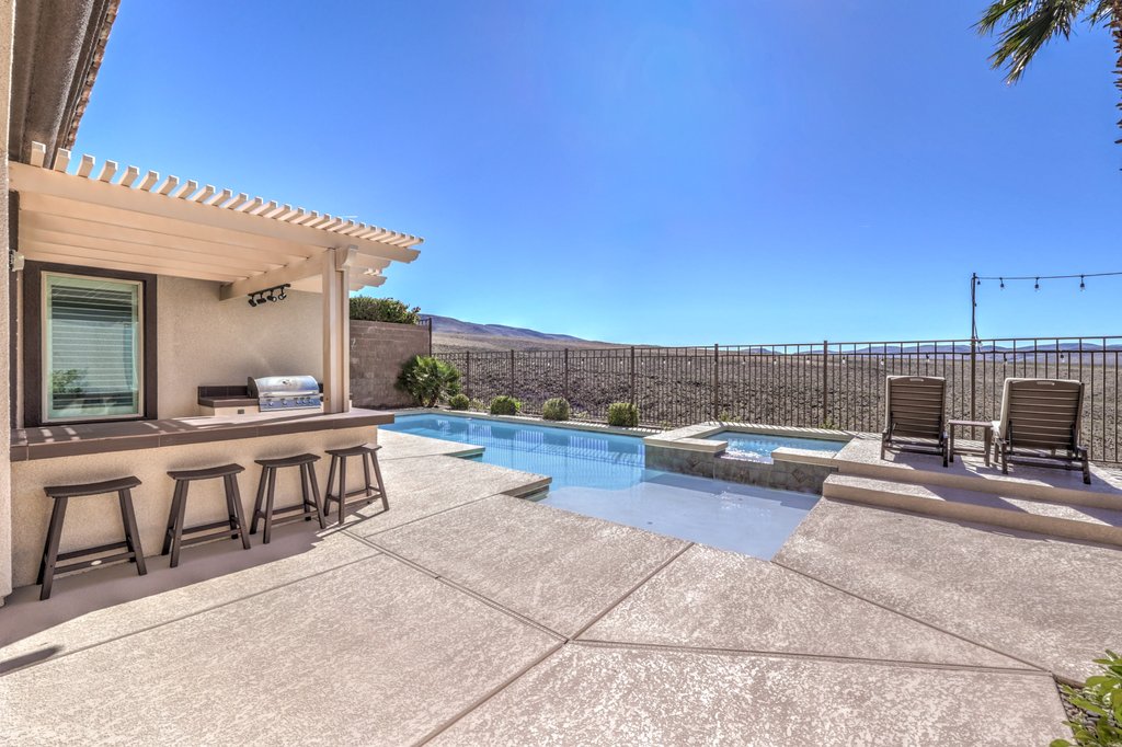 • Pool, Spa, Covered Patio, Outdoor Kitchen, Mountain and Sunset/Sunrise Views